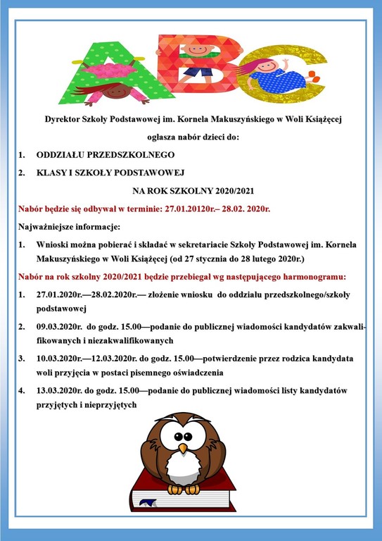 Rekrutacja na rok szkolny 2020/2021
