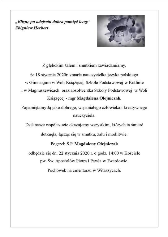 Z głebokim żalem i smutkiem żegnamy naszą Koleżankę Magdalenę Olejniczak.