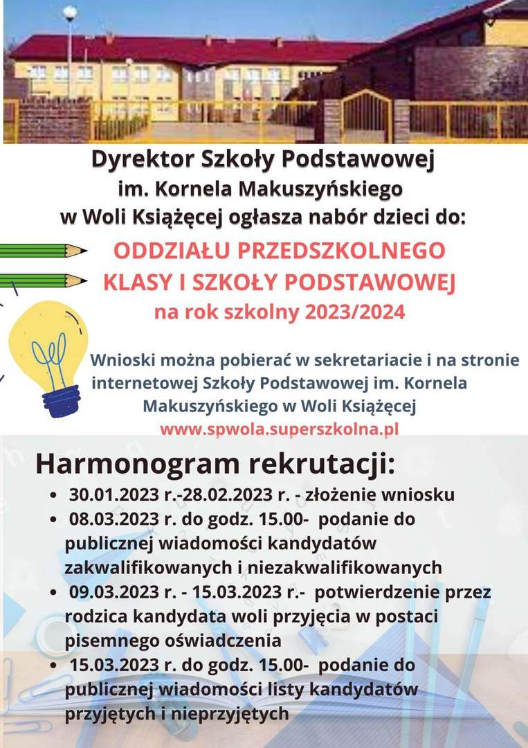 • Harmonogram rekrutacji na rok szkolny 2023/24