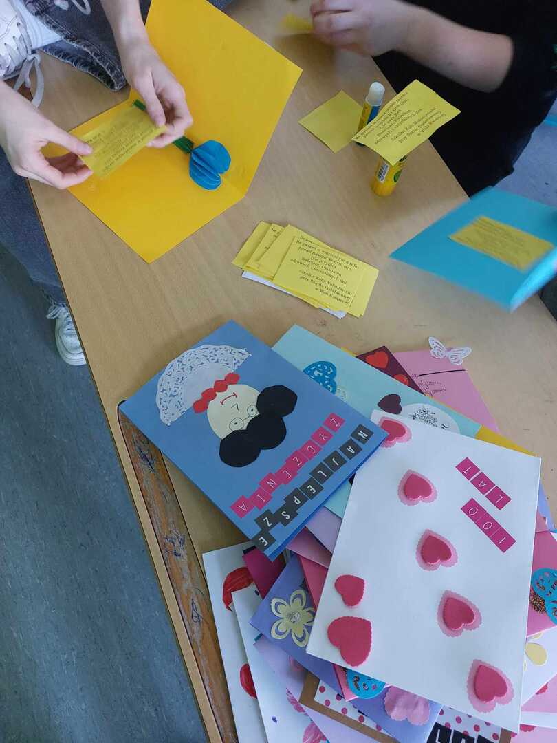 W minionym tygodniu Szkolne Koło Wolontariatu przeprowadziło kolejną akcję pt.: "Laurka dla Babci i Dziadka", podczas której wolontariusze mogli wykazać się swoimi zdolnościami manualnymi oraz kreatywnością i stworzyli laurki z życzeniami dla osób starszych z DPS-u w Kotlinie.