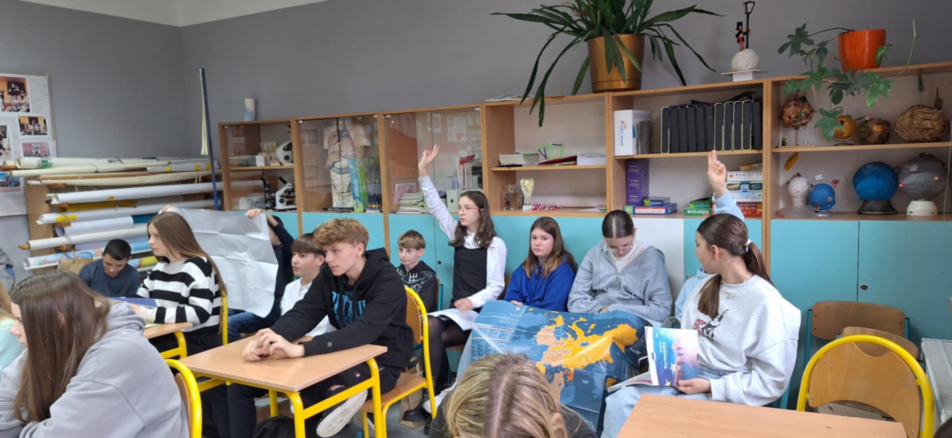 Lekcja była pełna zaangażowania i aktywności – uczniowie mieli okazję zgłębiać podstawowe pojęcia związane z Unią Europejską oraz uczestniczyć w ciekawych ćwiczeniach i dyskusjach. Dzięki takiej formie zajęć młodzież mogła lepiej zrozumieć istotę współpracy między państwami w ramach UE.