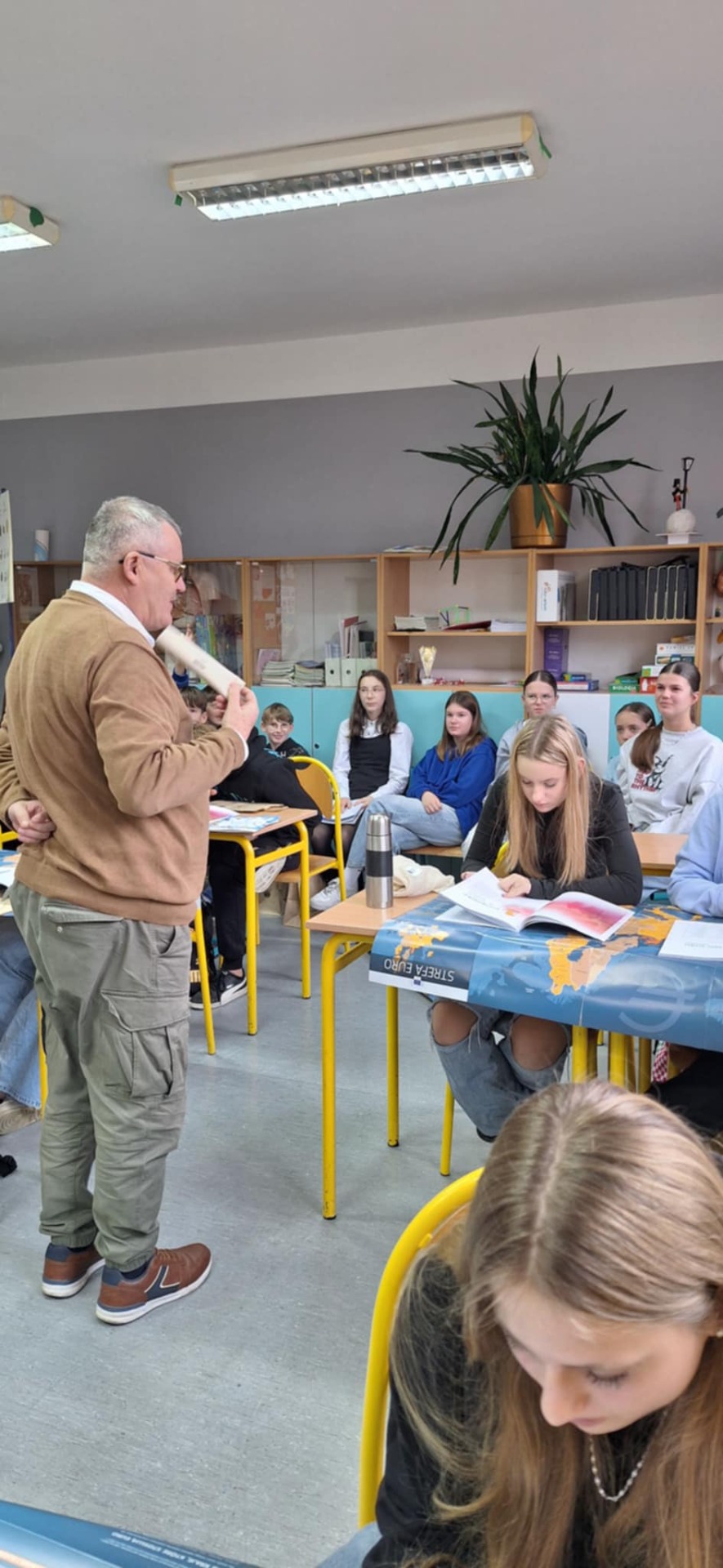 W naszej szkole odbyła się już druga lekcja europejska, którą poprowadził pan Jan Klemt, prezes Fundacji Kuźnica. Tym razem w spotkaniu wzięli udział uczniowie klas 7 i 8.