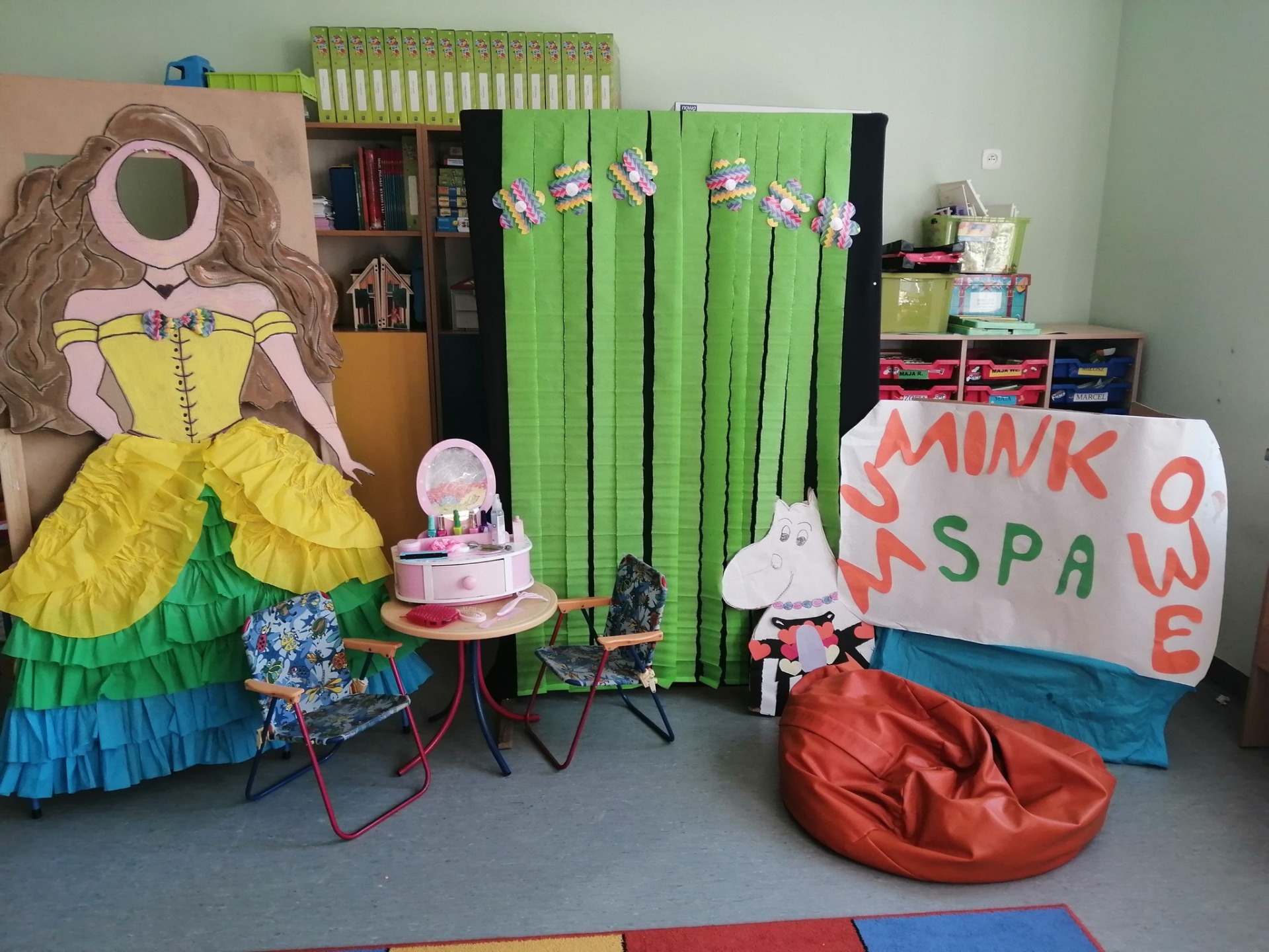 Sala grupy "Jabłuszek"z okazji Dnia Kobiet zamieniła się w Muminkowe SPA.