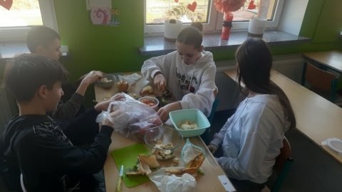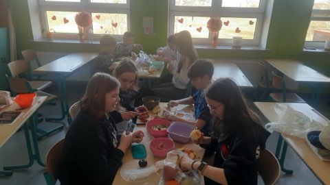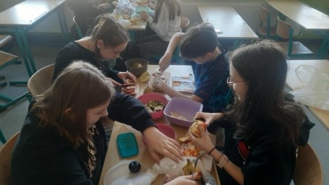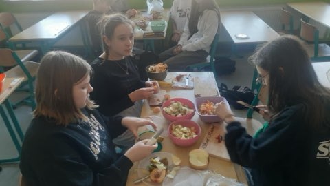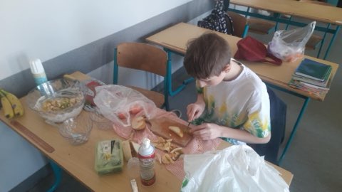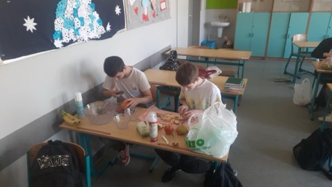 W ramach programu „Trzymaj formę” uczniowie klasy VII przygotowywali sałatki owocowe. Było zabawnie, smacznie, zdrowo, kolorowo.