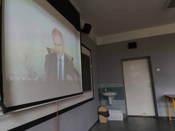Dnia 31.03.2025r. uczniowie klas VII oraz VIII uczestniczyli w lekcji zdalnej, którą poprowadził Pan Kajetan Kosterkiewicz, który na co dzień zajmuje się orzekaniem spraw w Sądzie Okręgowym w Poznaniu. Temat jaki został poruszony to „ Hejt, trolling i memy". Po co jest prawo i jak mnie chroni – na przykładzie naruszeń dóbr osobistych w internecie”, czyli profilaktyka w zakresie bezpieczeństwa dzieci i młodzieży w sieci.