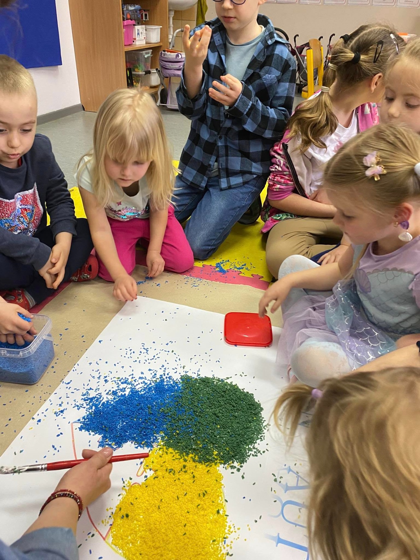 Dzieci z grupy Wisienki włączyły się w obchody tego wyjątkowego dnia. Najmłodszych w temat autyzmu wprowadziła bajka ,,Jaś i niebieskie motyle", dzięki której dowiedziały się jak funkcjonują osoby z autyzmem. Podczas zajęć poznały charakterystyczne cechy osób z autyzmem i to z jakimi kłopotami mogą się mierzyć w życiu codziennym. Głównym celem dzisiejszych zajęć oprócz propagowania wiedzy na temat autyzmu było budowanie wśród dzieci wrażliwości społecznej oraz empatii i tolerancji osób z autyzmem. Dzieci na znak solidarności z osobami w spektrum autyzmu wspólnie wykonały pracę plastyczną, na której odcisnęły swoje dłonie
