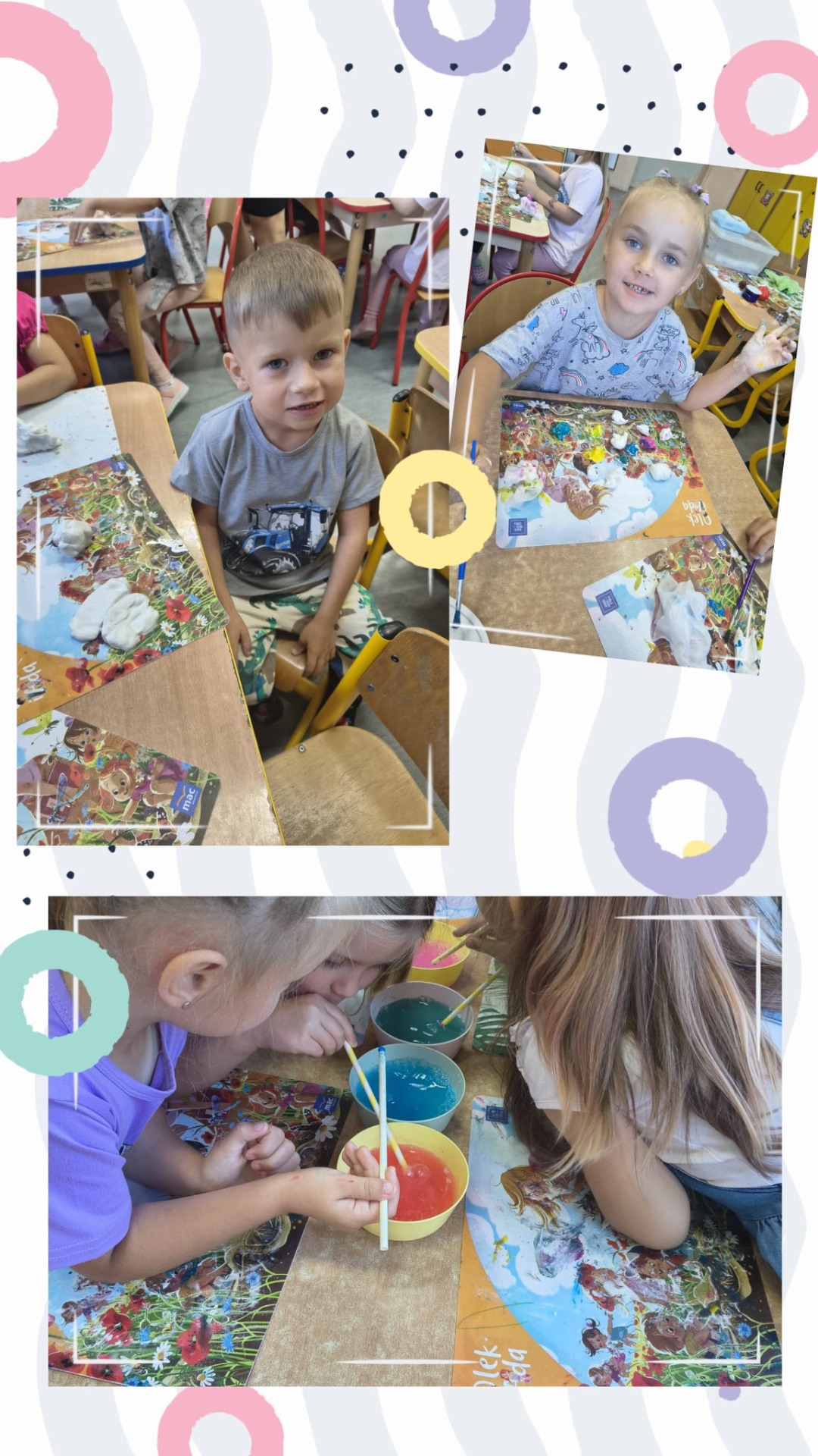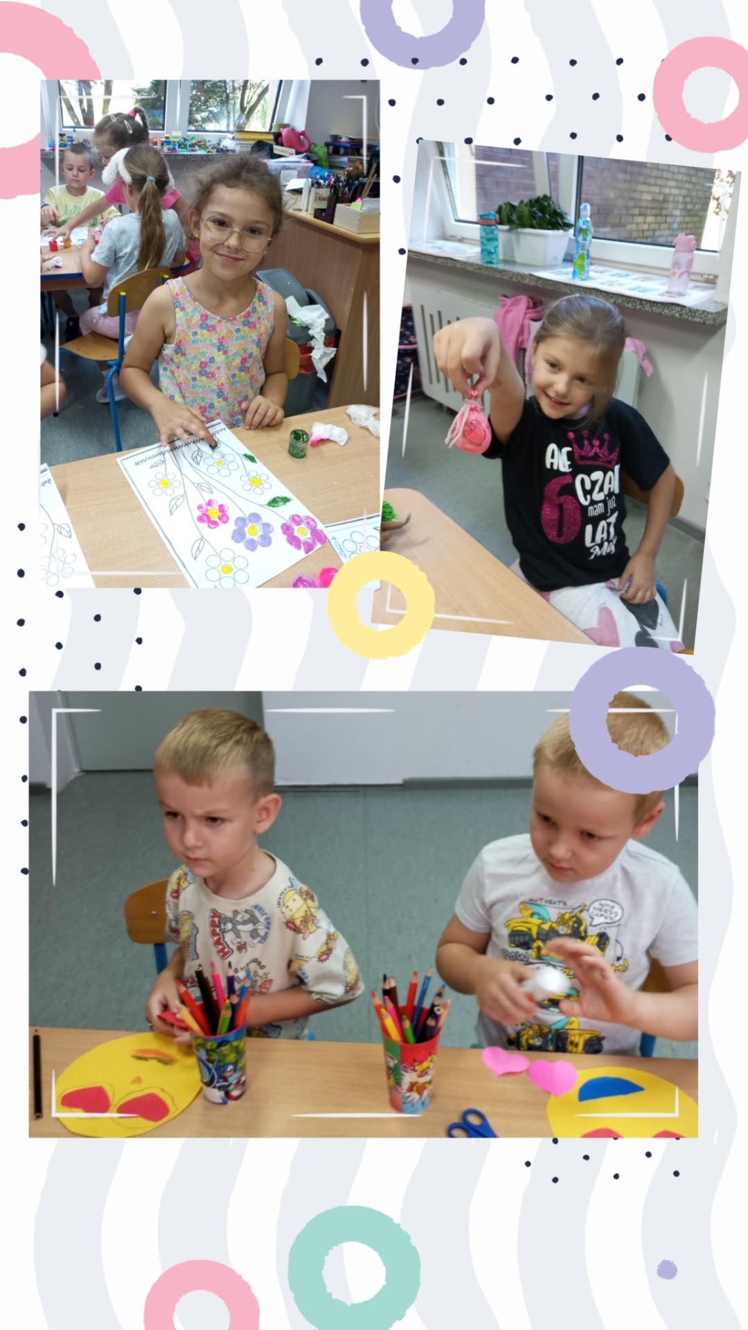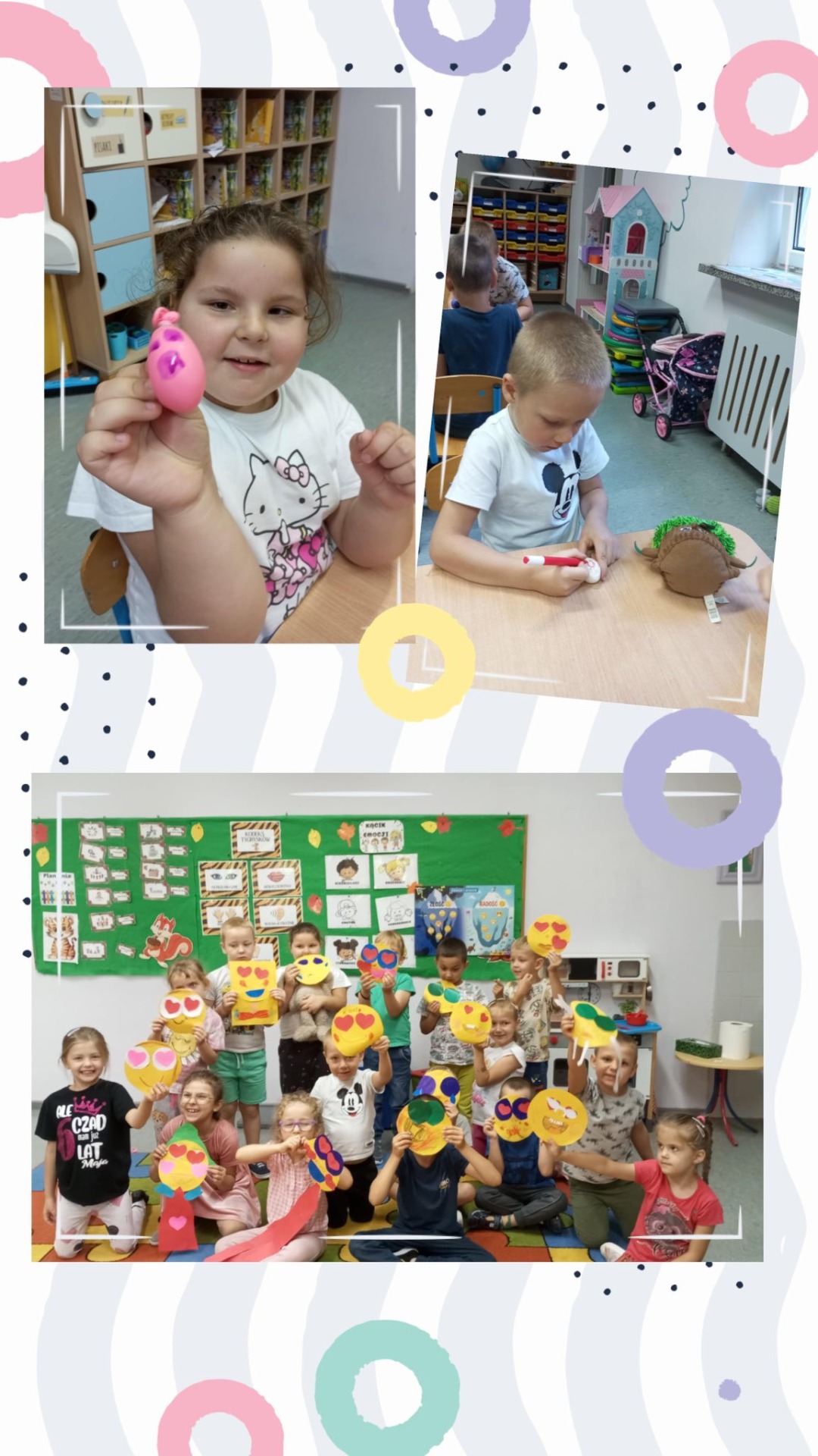 Tygryski odkrywały, że emocje towarzyszą nam każdego dnia – zarówno te radosne, jak i trudniejsze. Z ogromnym zaangażowaniem stworzyły gniotki antystresowe, a także wspólną pracę plastyczną, pełną barw i wyobraźni, przedstawiającą różne uczucia.