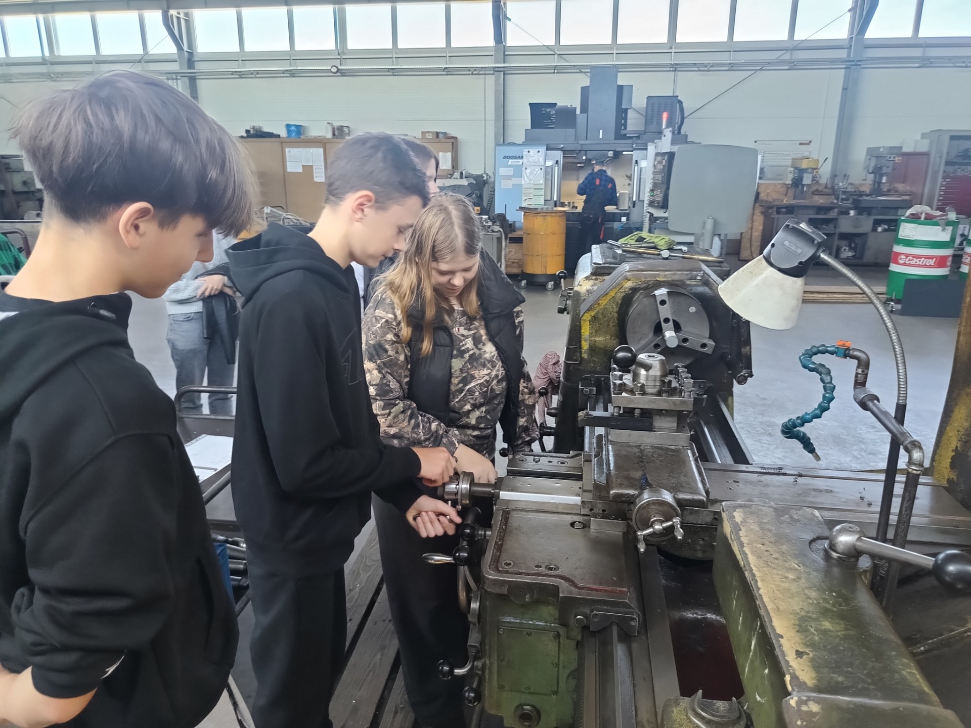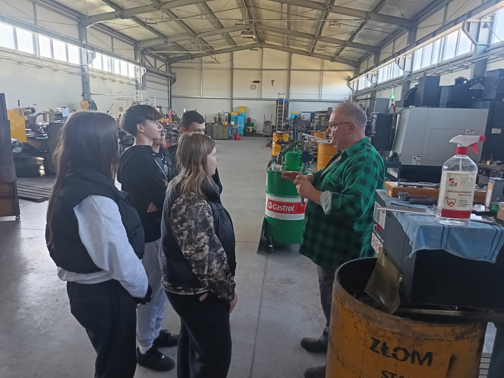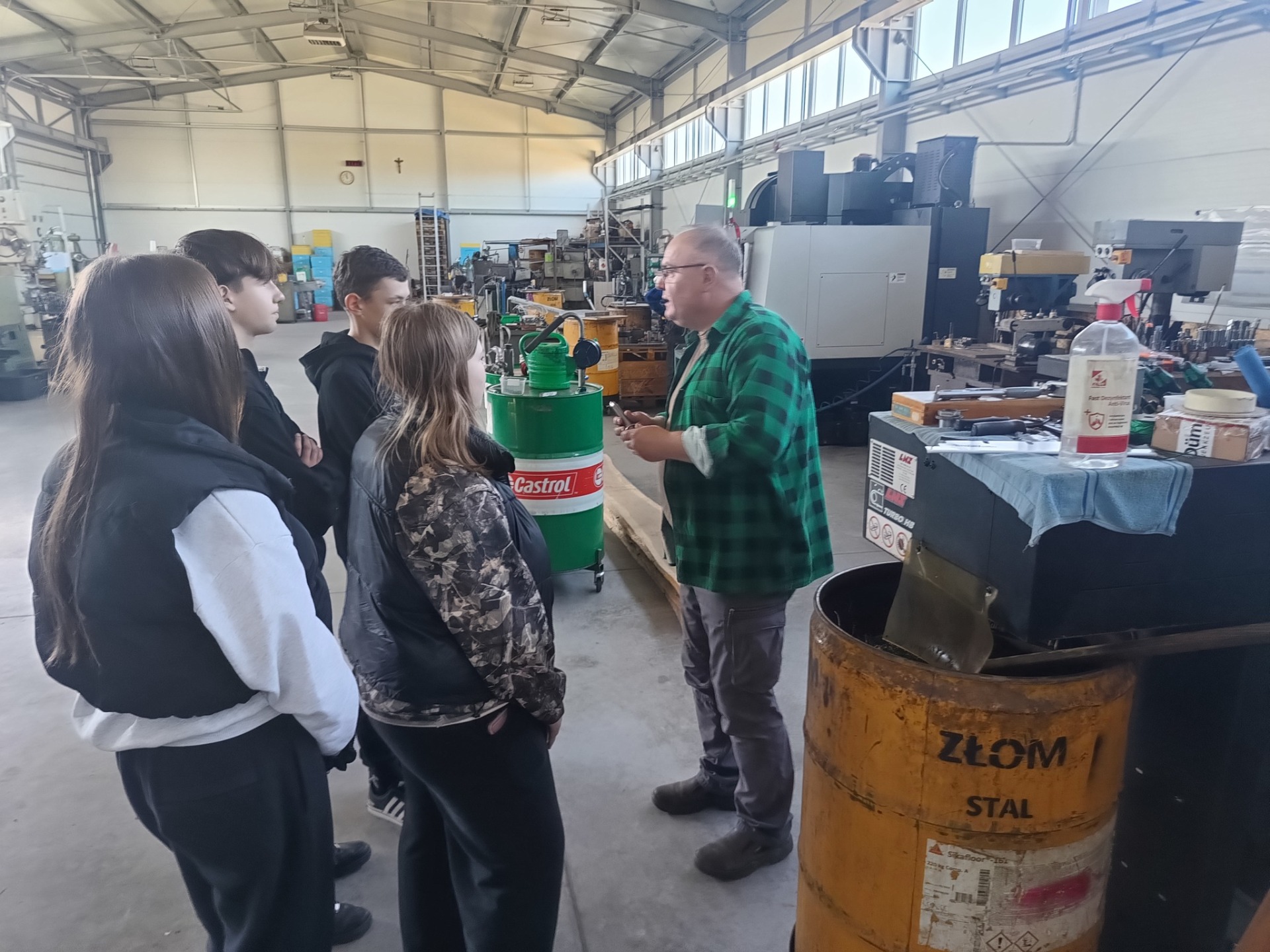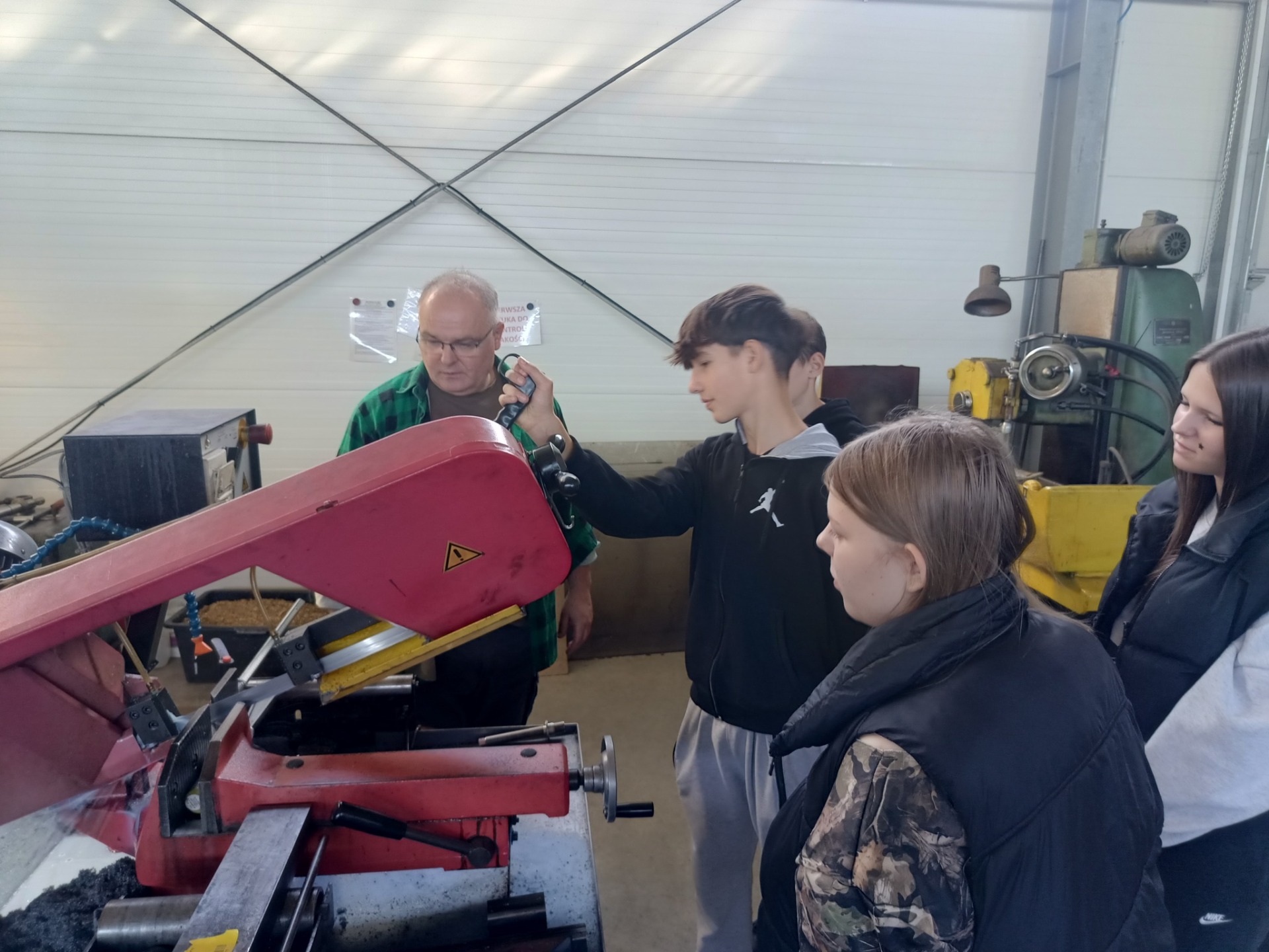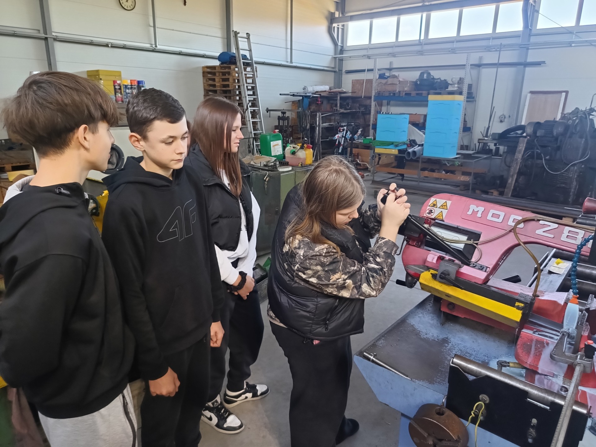 Następnie uczniowie udali się do drugiego przedsiębiorstwa zajmującego się obróbką i produkcją części metalowych. Właściciel tego zakładu również aktywnie zaangażował uczniów, przygotowując zadanie polegające na przecięciu metalowego elementu przy użyciu odpowiednich narzędzi. Uczniowie mieli również okazję poznać maszyny wykorzystywane w procesie wytwarzania oraz obserwować etapy produkcji różnych komponentów.