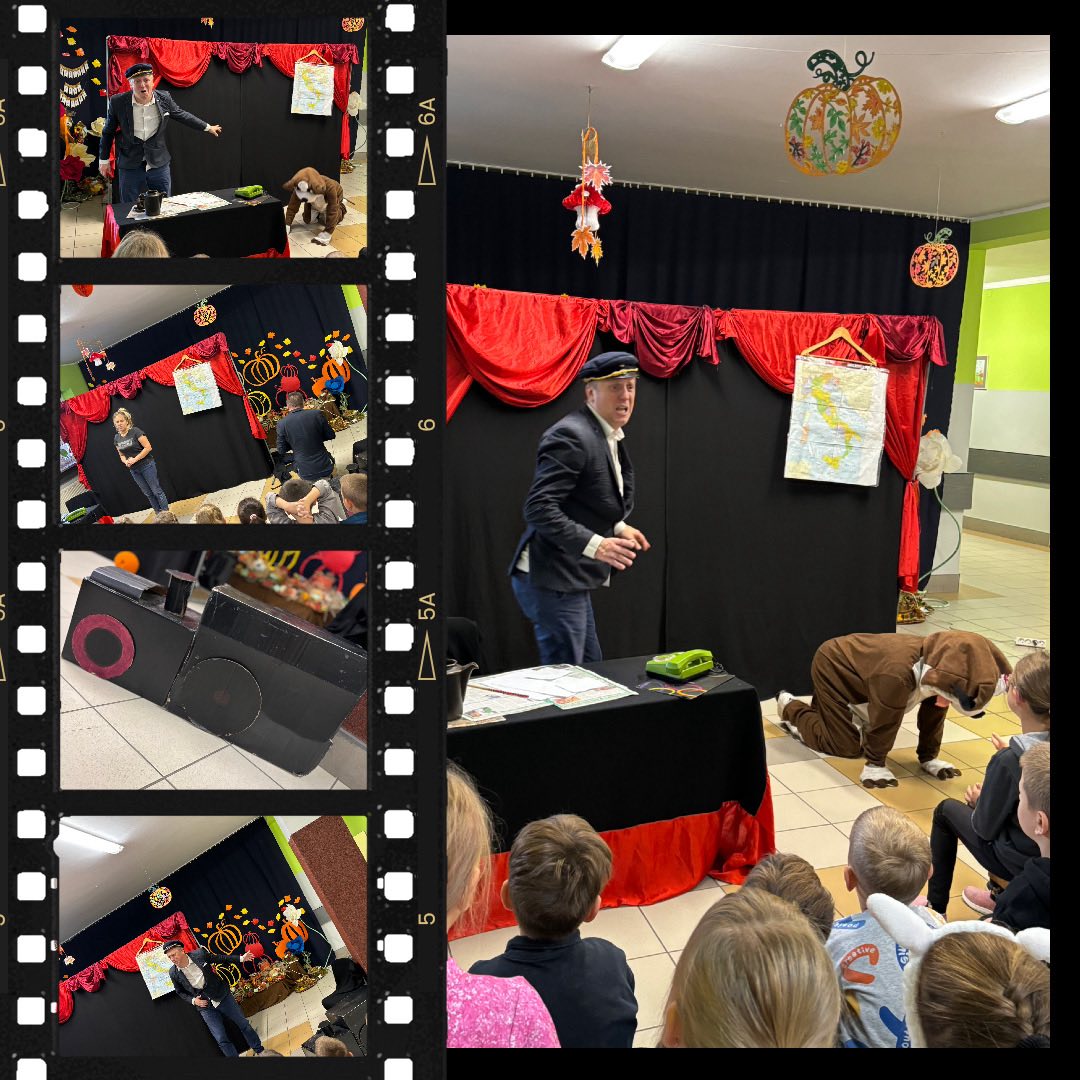 Uczniowie klas 1-3 mieli niezwykłą okazję obejrzeć spektakl pt. ,,O psie, który jeździł koleją’’. Przedstawienie oparte na znanej i lubianej książce wzbudziło ogromne zainteresowanie dzieci. Od pierwszych chwil na widowni panowała atmosfera radości i zaciekawienia. Z zapartym tchem mali odbiorcy śledzili przygody psa Lampo. Spektakl nie tylko bawił, ale też wzruszał i skłaniał do refleksji o przyjaźni, lojalności i miłości do zwierząt. Uczniowie wychodzili z przedstawienia uśmiechnięci i pełni pozytywnych emocji.