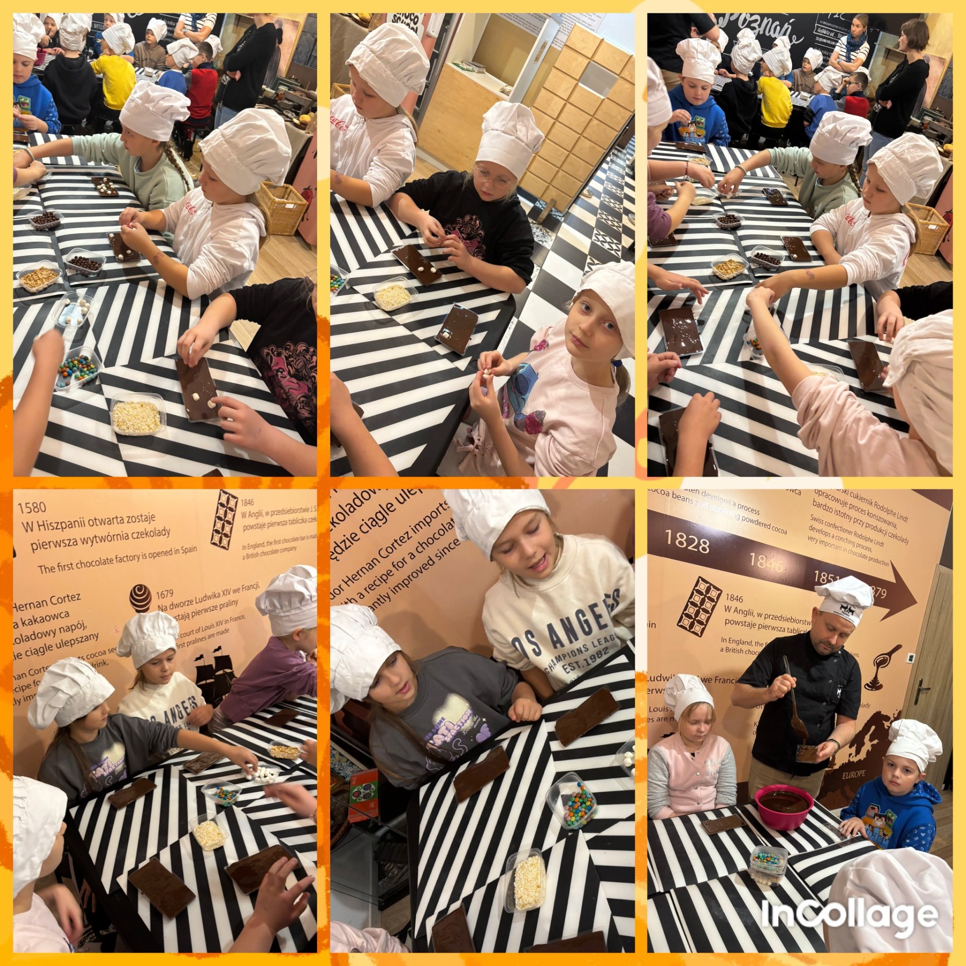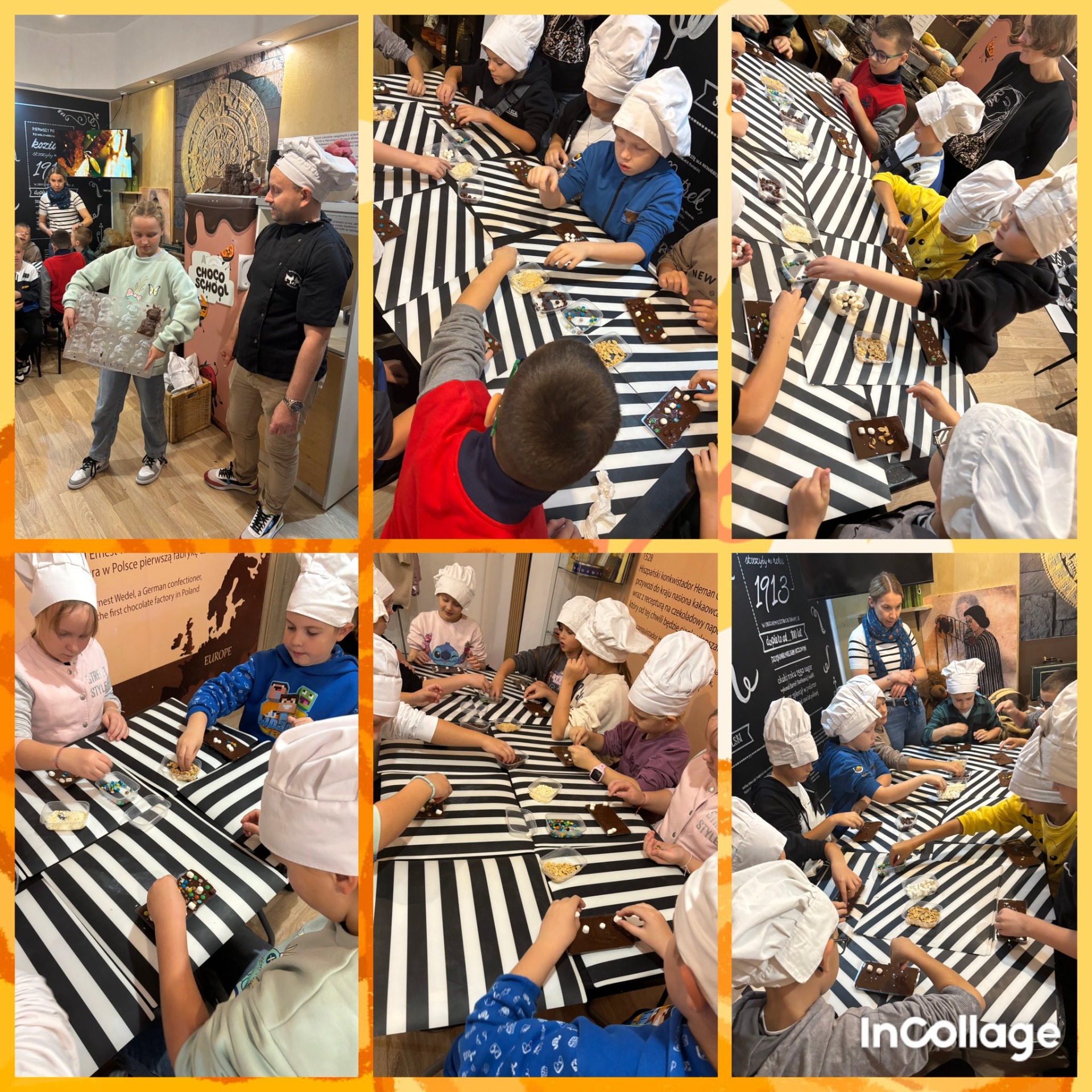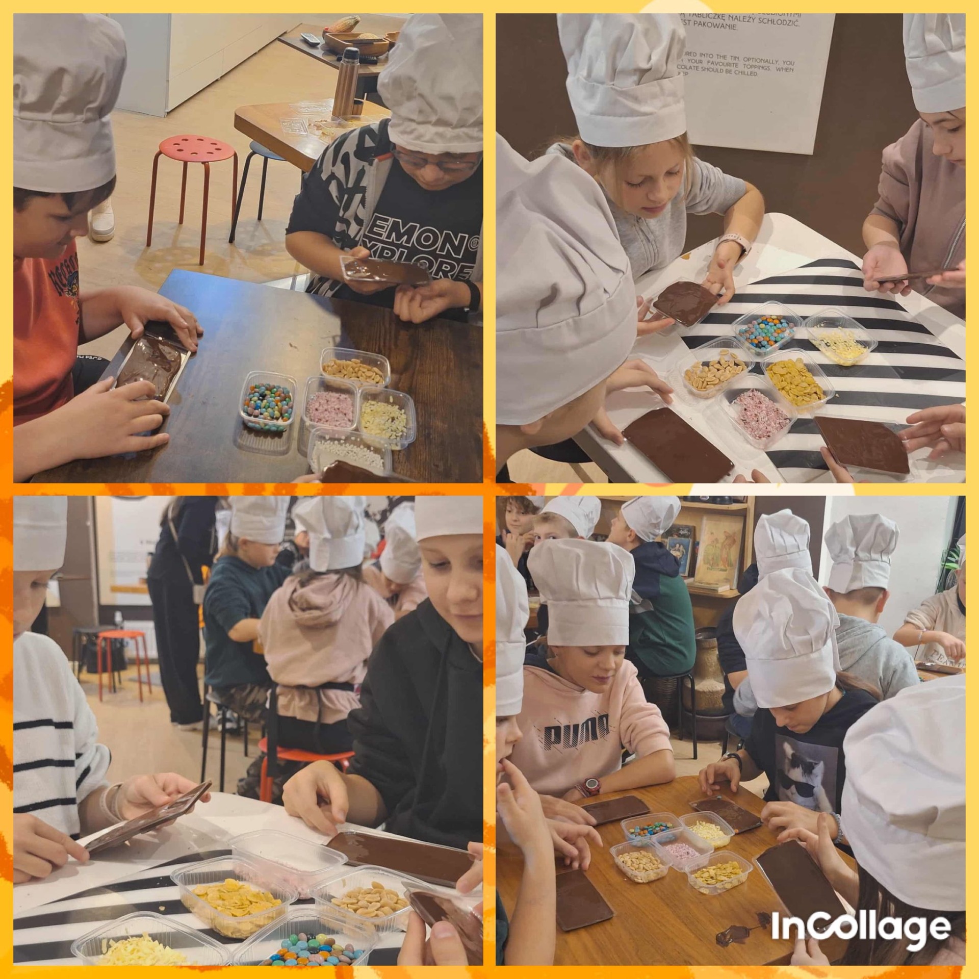 Pierwszym punktem programu były warsztaty czekolady, podczas których dzieci własnoręcznie ozdabiały swoje tabliczki czekolady. Zajęcia były bardzo ciekawe, pachnące i sprawiły wszystkim dużo radości.