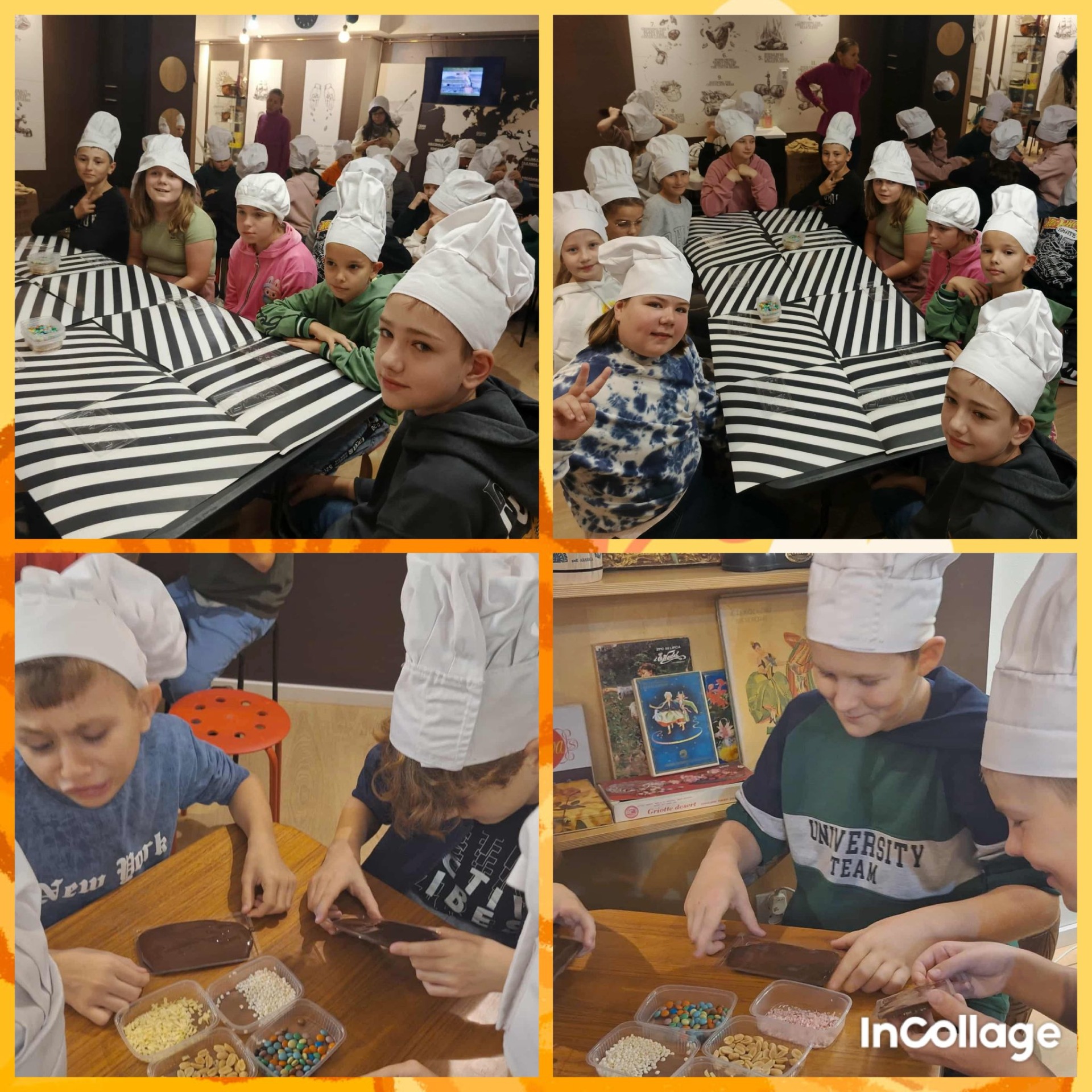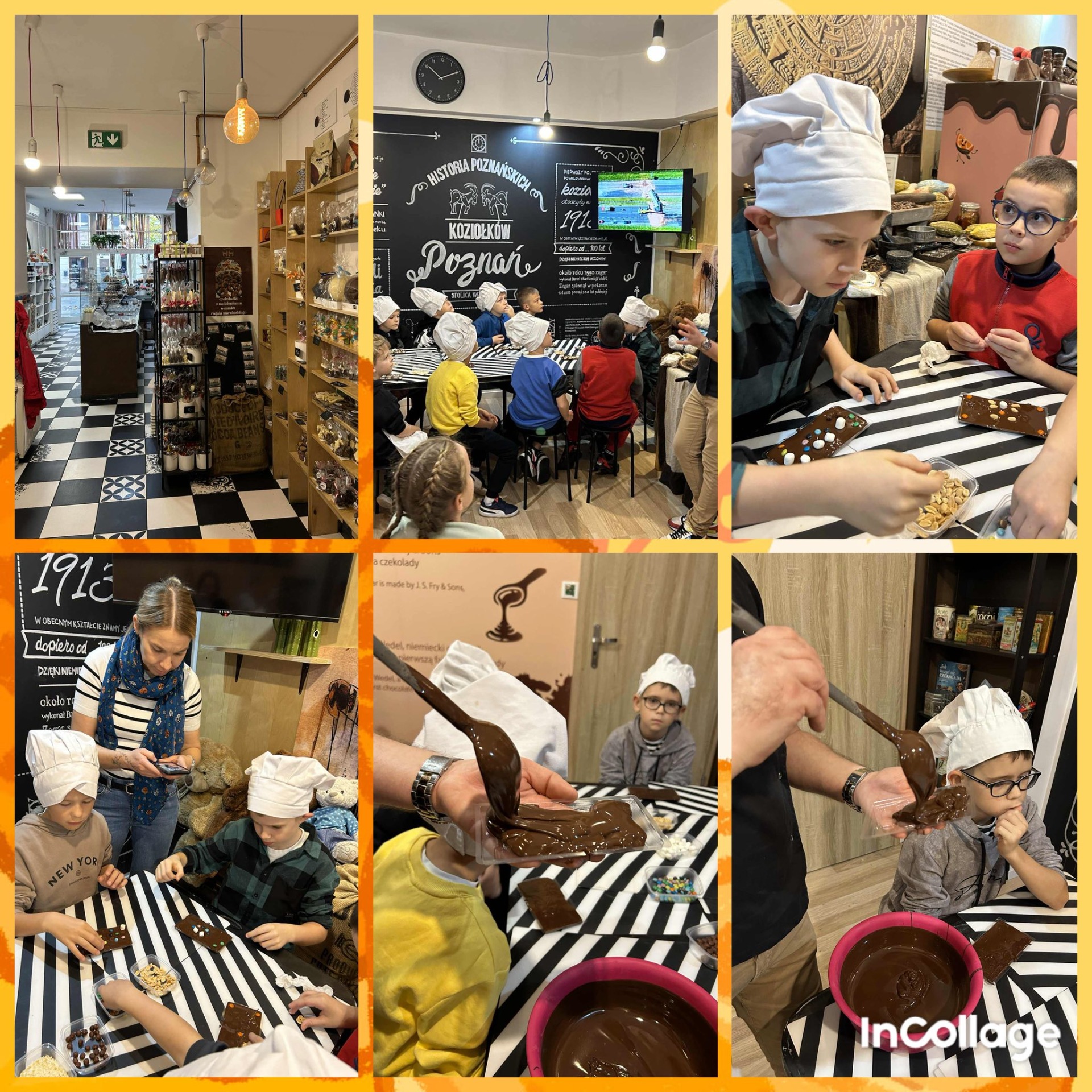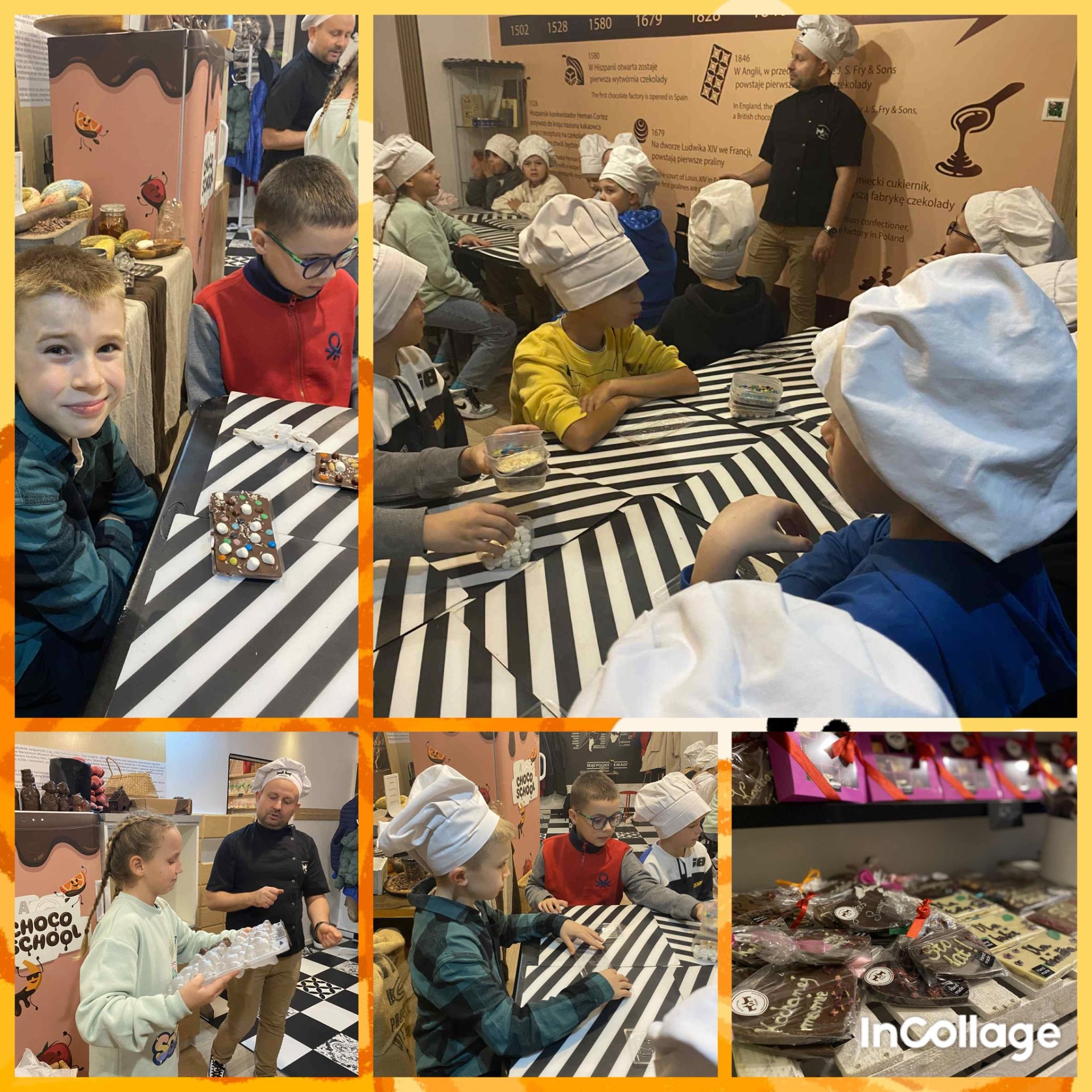 Pierwszym punktem programu były warsztaty czekolady, podczas których dzieci własnoręcznie ozdabiały swoje tabliczki czekolady. Zajęcia były bardzo ciekawe, pachnące i sprawiły wszystkim dużo radości.