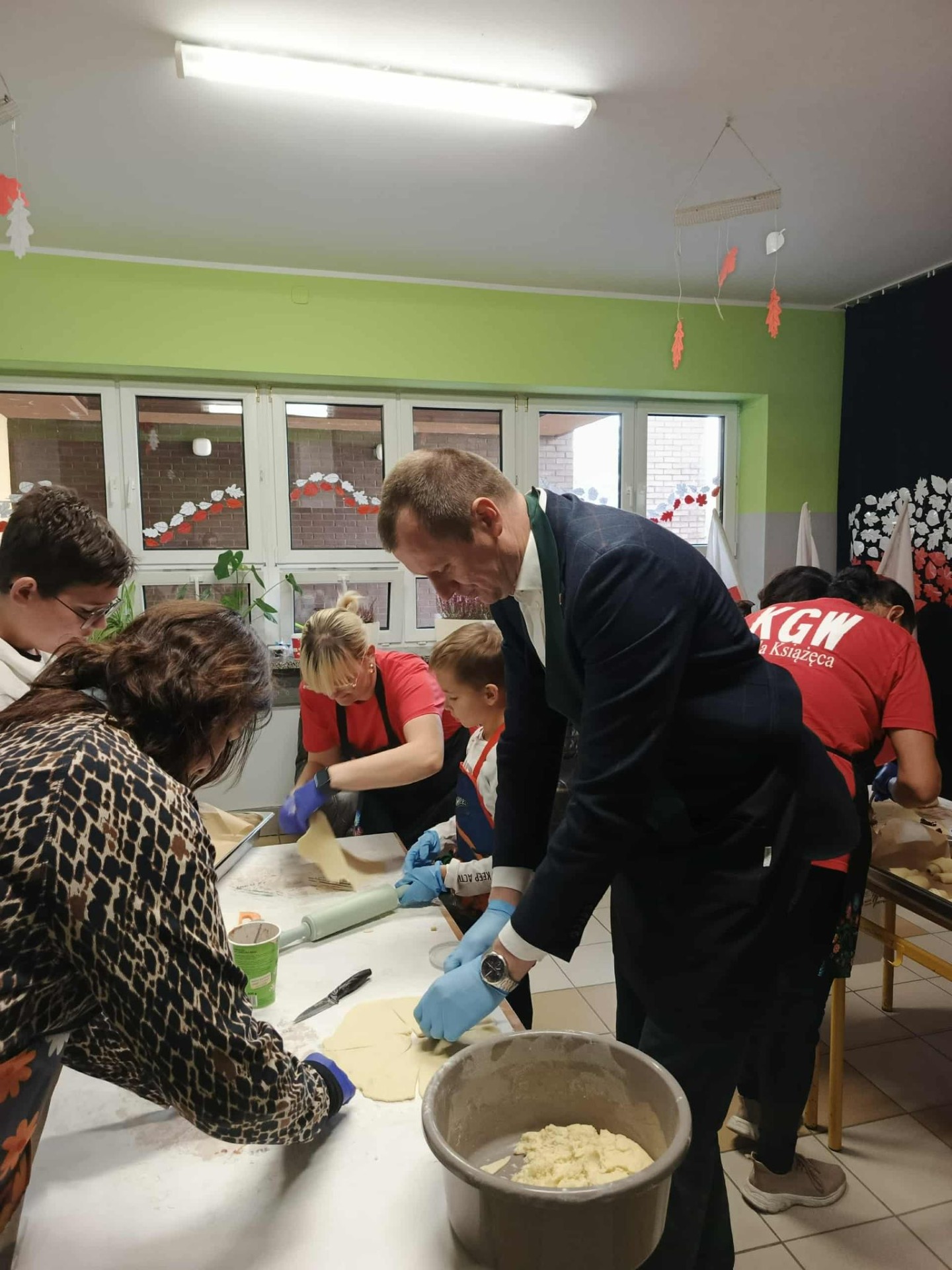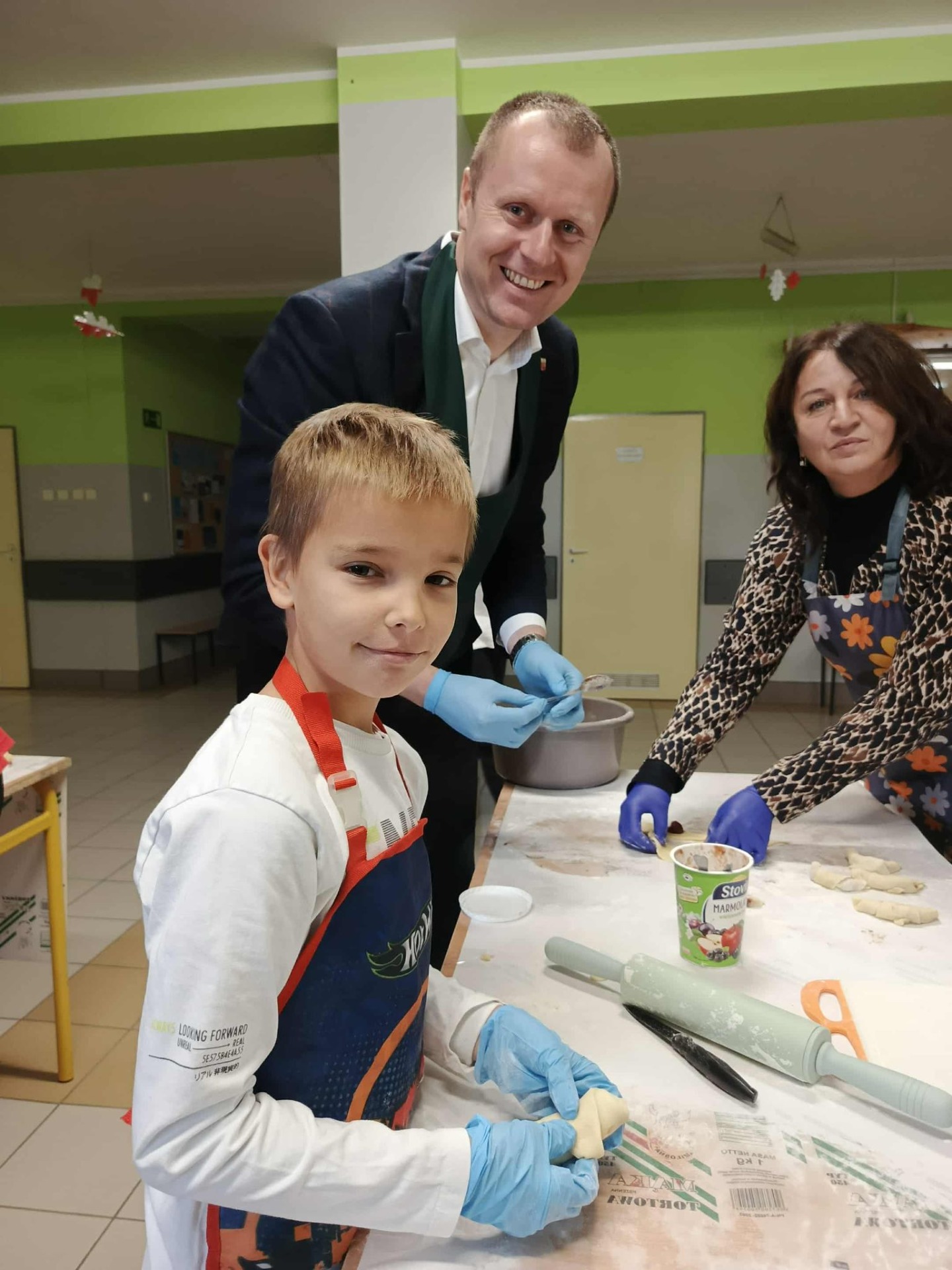 W przygotowaniach i wspólnym wypieku pomagali wyjątkowi goście: Starosta Powiatu Jarocińskiego Pan Mariusz Stolecki, Wicestarosta Pani Katarzyna Szymkowiak, poseł Pani Lidia Czechak, radna Gminy Kotlin Pani Paulina Mataj, sołtys wsi Woli Książęcej Pan Stefan Kozłowski oraz Panie z Koła Gospodyń Wiejskich.