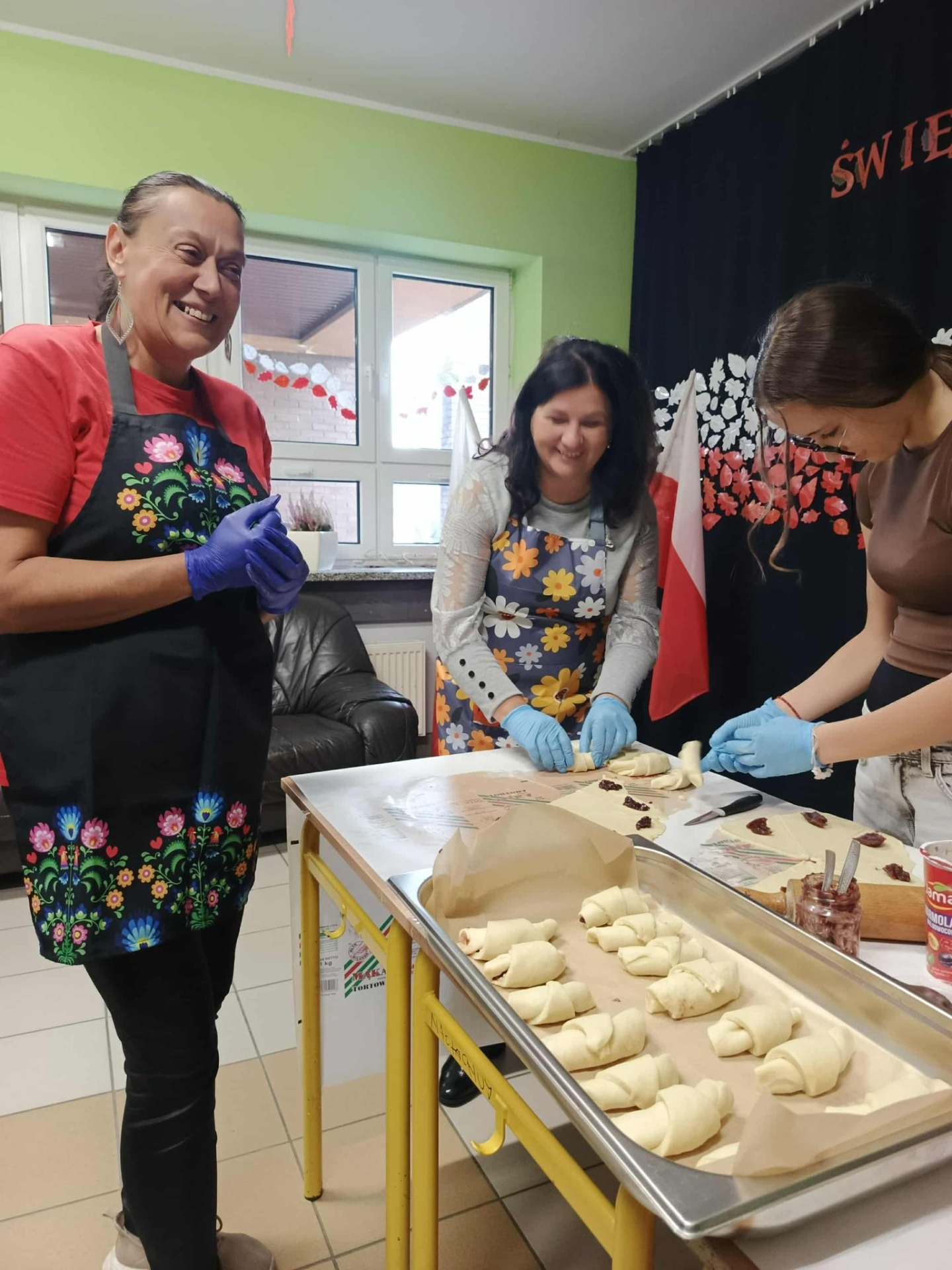 Uczniowie z Samorządu Uczniowskiego od rana wałkowali ciasto i wypiekali aromatyczne rogale, które cieszyły się ogromnym powodzeniem.