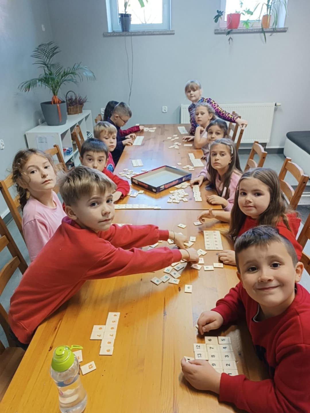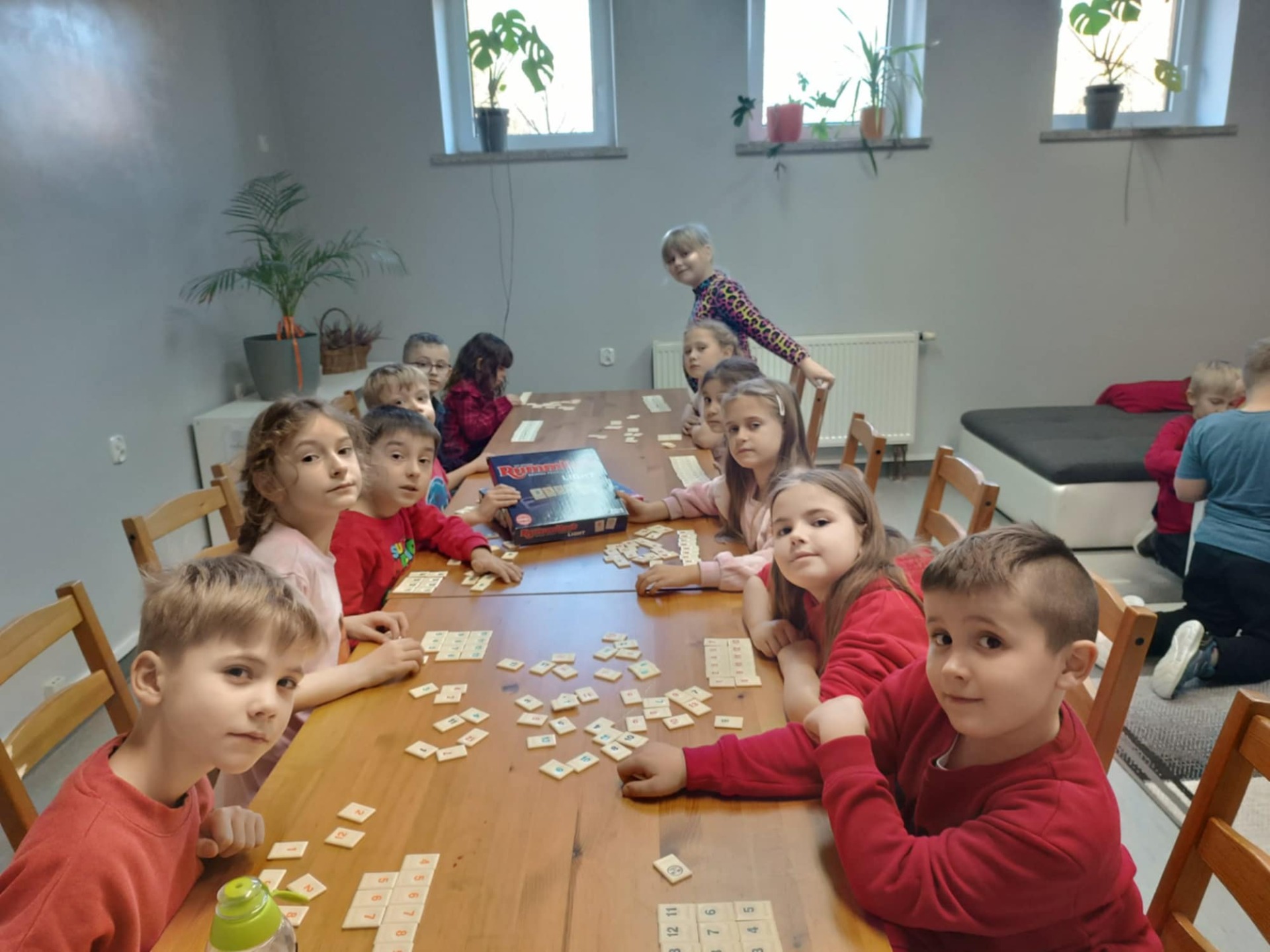 Klasy pierwsze na zajęciach świetlicowych rozpoczęły przygodę z grą Rummikub, która uczy przede wszystkim logicznego myślenia, planowania strategicznego, koncentracji i umiejętności matematycznych. Gra rozwija także spostrzegawczość, kreatywność oraz umiejętności społeczne, takie jak zasady fair play, komunikacja i współpraca. Pozwala ona łączyć zabawę z nauką poprzez rozwiązywanie problemów i tworzenie układów z kostek. Na pierwszych zajęciach zapoznały się z zasadami oraz z uproszczona formą gry. Jak widać na zdjęciach dzieci bardzo były zaangażowane.