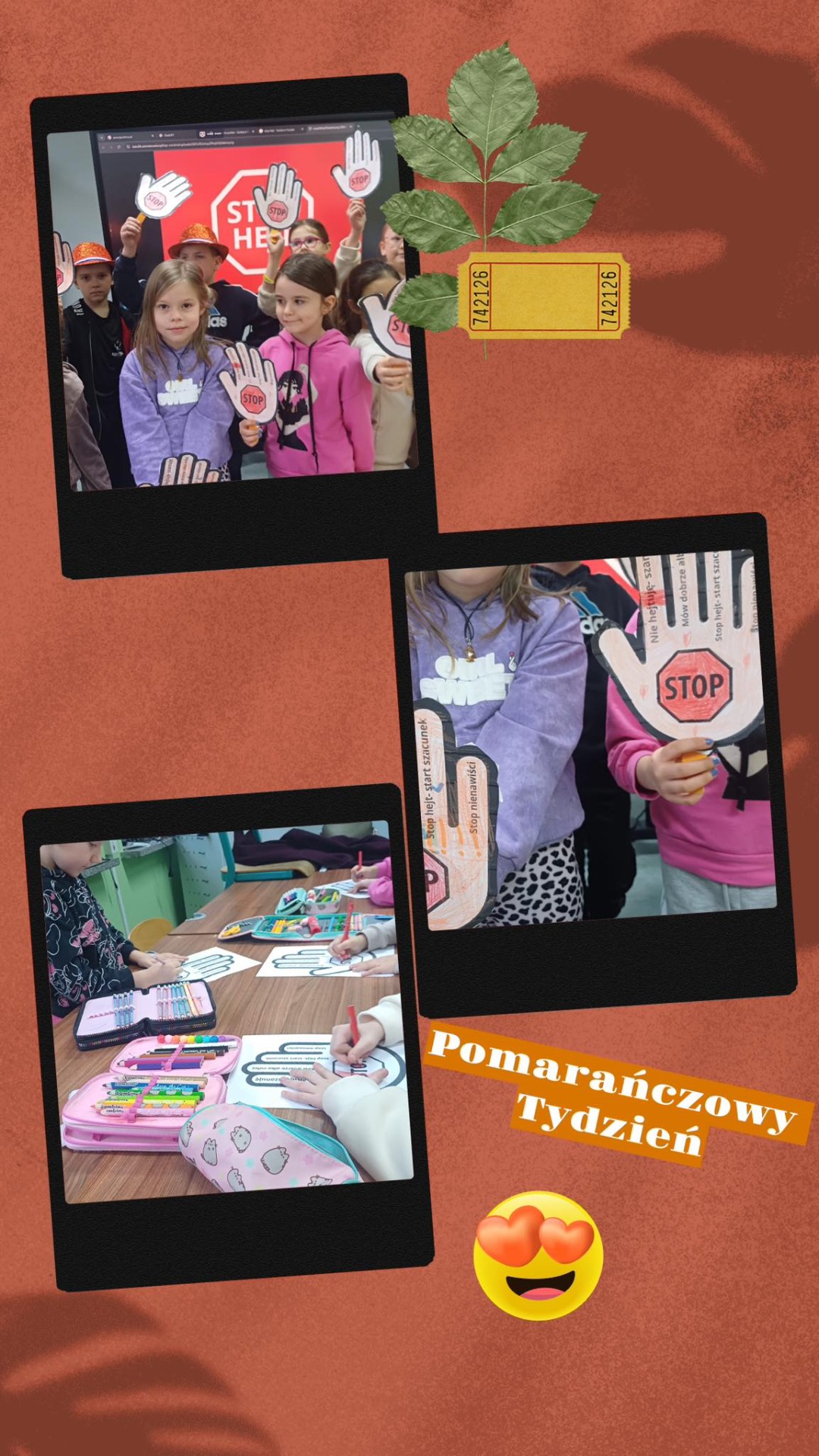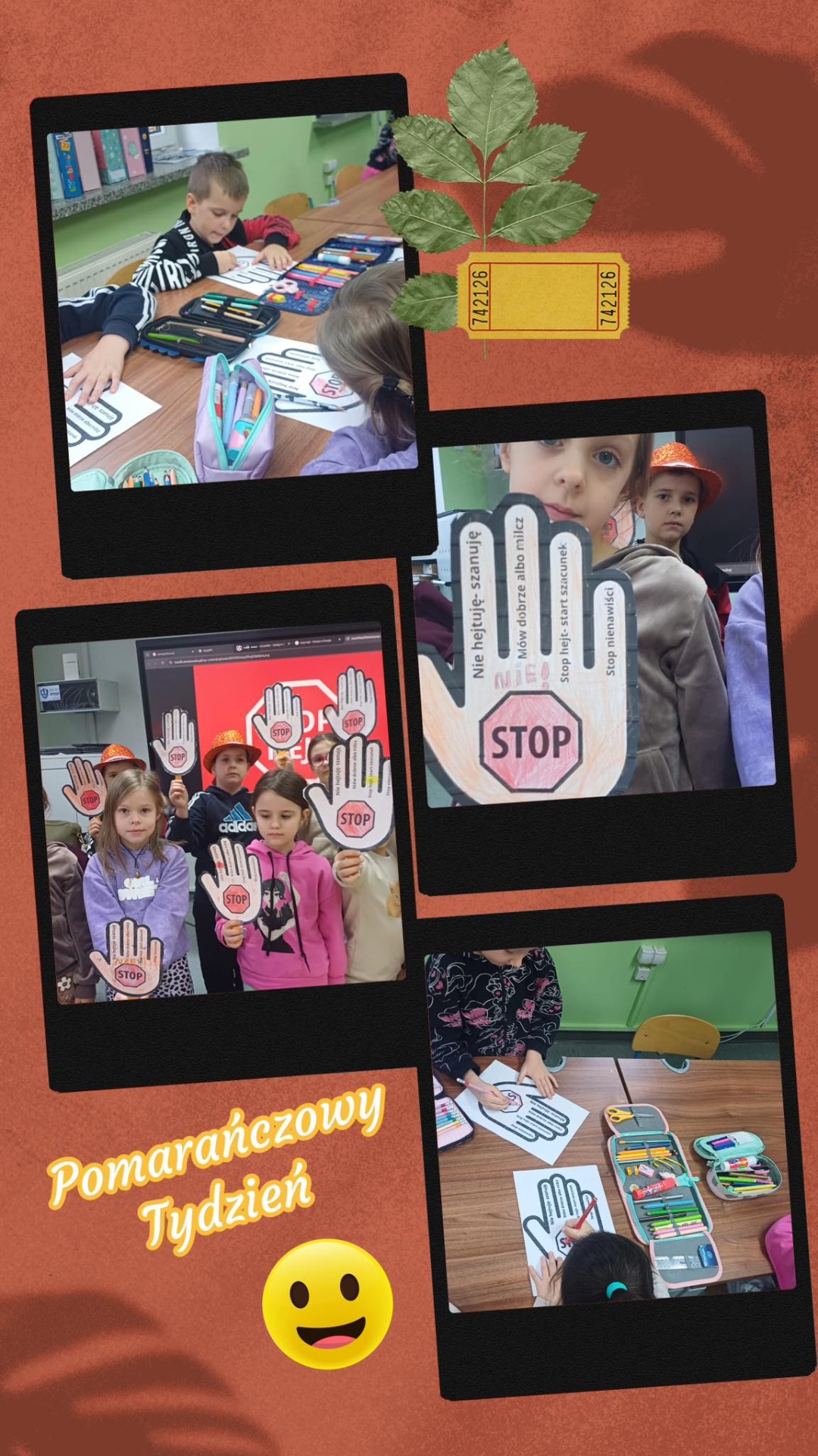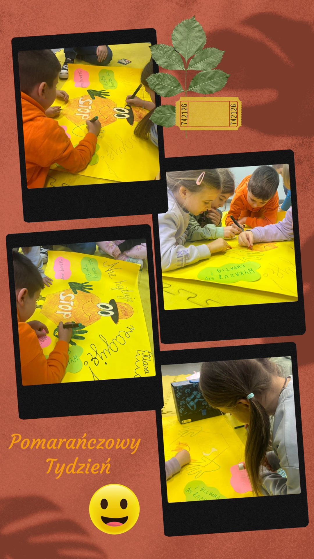 Młodsze klasy przygotowywały kolorowe i pomysłowe plakaty przeciwko przemocy, natomiast uczniowie starszych klas realizowali podczas godzin wychowawczych zajęcia według przygotowanych scenariuszy. Wykonywali zaplanowane zadania: układali dialogi, tworzyli komiksy, plakaty tematyczne, a także dyskutowali o sposobach radzenia sobie w trudnych sytuacjach. Był to miesiąc pełen życzliwości, ale również ważnych rozmów o tym, jak rozpoznawać i powstrzymywać przemoc- różnego rodzaju, jak korzystać z numerów alarmowych, dlaczego warto dbać o bezpieczeństwo w sieci oraz mówić głośno STOP hejtowi.